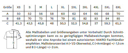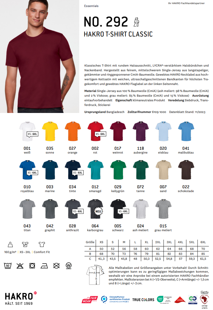 • Größe: XS-3XL (ausgewählte Farben bis 6XL erhältlich)